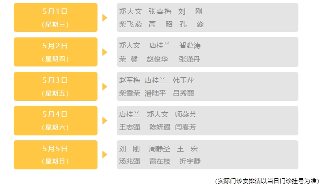 山西省眼科医院“五一”假期(5.1-5.5)出诊医师信息