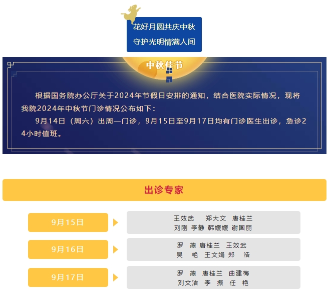山西省眼科医院2024年“中秋节”期间医师出诊信息
