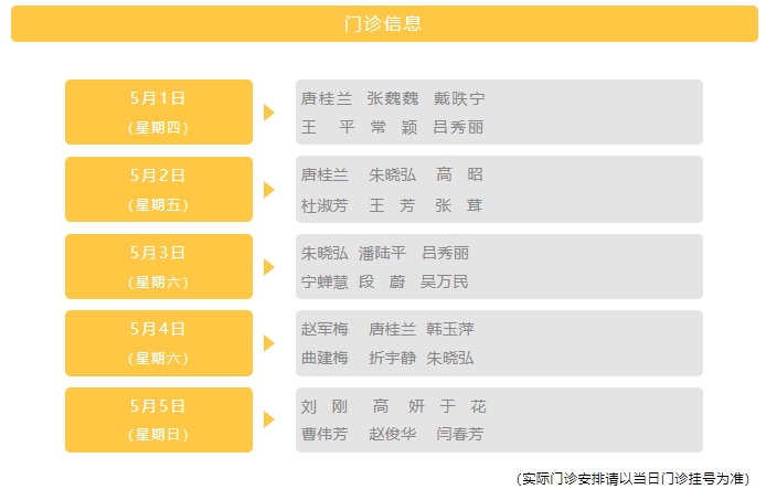 山西省眼科医院“五一”假期(5.1-5.5)出诊医师信息