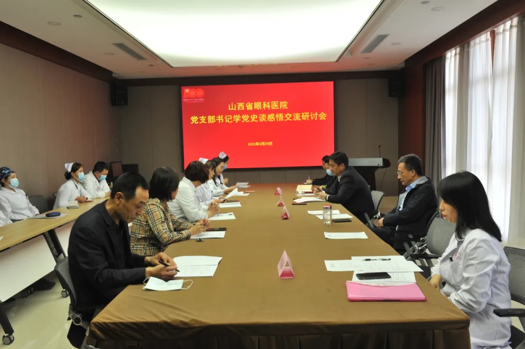 研讨会上,综检支部书记宁晓玲就创新学习方法,结合科室实际加强科普宣传,切实把我为群众办实事落到实处进行交流。小儿眼科支部书记姚霞就青少年近视防控与习近平“大健康”理念进行了分享。通过支部的交流,达到了学史明理,学史增信,学史崇德,学史力行的目的。 党委书记阎明广就近期我院学党史主题教育工作及支部书记交流发言进行总结和点评。他指出,一是支部书记要在认真学党史用党史中起到先锋模范带头作用,把政治理论学习和业务工作统筹安排,一体推进,切实提高为人民服务,为患者服务的政治自觉和服务本领。二是要坚持问题导向,把解决实际问题作为检验标尺,把增进民生福祉作为发展目的。结合医院实际,围绕群众就医防病的“急难盼愁”问题,拿出具体举措,将我为群众办实事落到实处。三是要结合实际,深入调查研究,创新学习教育内容、形式和方法,切实提高学习教育的针对性、实效性。