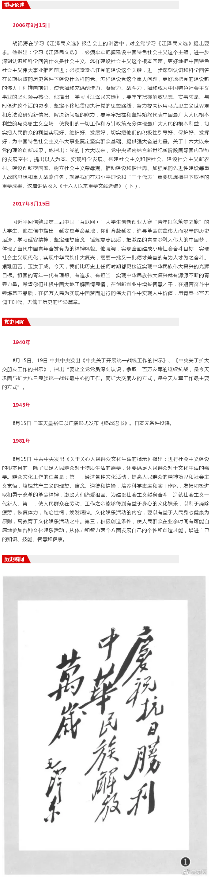 党史上的今天:8月15日