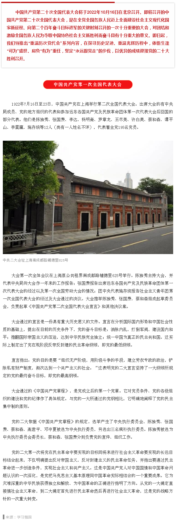 【喜迎二十大】重温历次党代会——中共二大