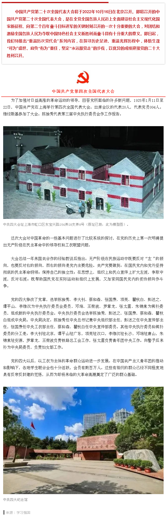 【喜迎二十大】重温历次党代会——中共四大