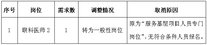 “服务基层项目人员专门岗位”因没有符合条件的人员报名,报考人员和招聘计划转入一般性岗位(以《岗位表》备注为准),不再接受报名。