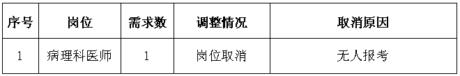 因病理科医师岗位无人报考,岗位取消。