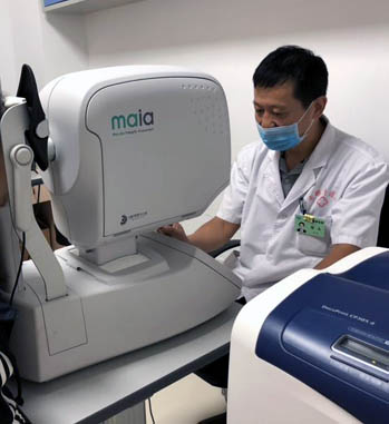 科室配备的眼科医疗检查设备:频域光学相干断层扫描仪(OCT),德国产 Pentacam 眼前节测量和分析系统,美国产 Itrace 视觉质量分析仪,超声生物显微镜,多焦视觉电生理检查仪,微视野计,德国产 Oculus眼表综合分析仪,海德堡视网膜脉络膜眼底血管同步造影仪,Maia 黄斑功能分析仪,多波长激光,共焦激光视网膜全层扫描,ORBSCAN前房分析仪,多点眼底激光,CR-2PLUSAF Canan 眼底彩色照相机等高精尖的检查设备36台。